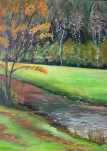 In Essen wonen we in een prachtige groene omgeving op een boogscheut van de Kalmthoutse Heide. Dit is dan ook vaak het onderwerp van mijn werken. Zowel acryl als aquarel komen aan bod.