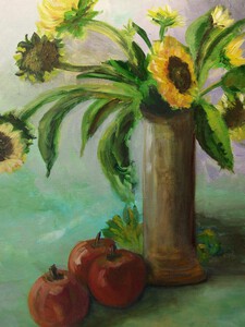 Zonnebloemen en appels